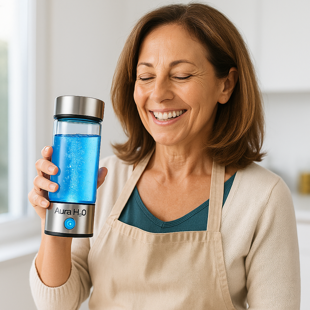 That’s exactly what the Aura H2O Bottle does: it infuses pure molecular hydrogen into your drinking water. The result? A refreshing glass of water that doesn’t just hydrate — it helps protect your cells, reduce inflammation, boost energy, and support overall wellness.
