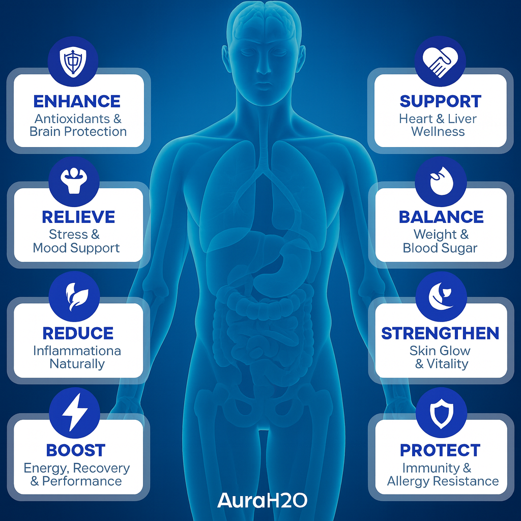 Hydrogen water is rich in antioxidants and naturally supports the body’s ability to fight inflammation. Research has shown benefits across 150+ areas of health and wellness — from energy and recovery to immunity and focus.