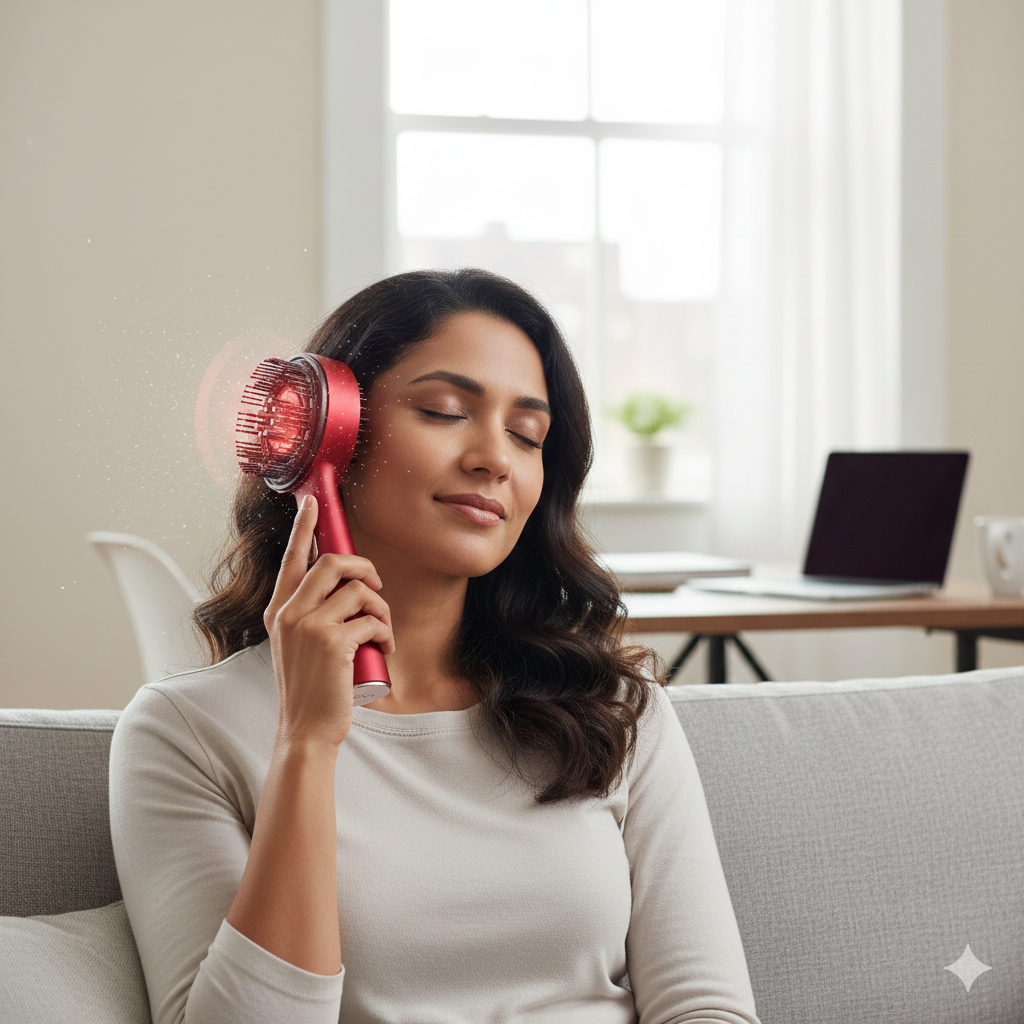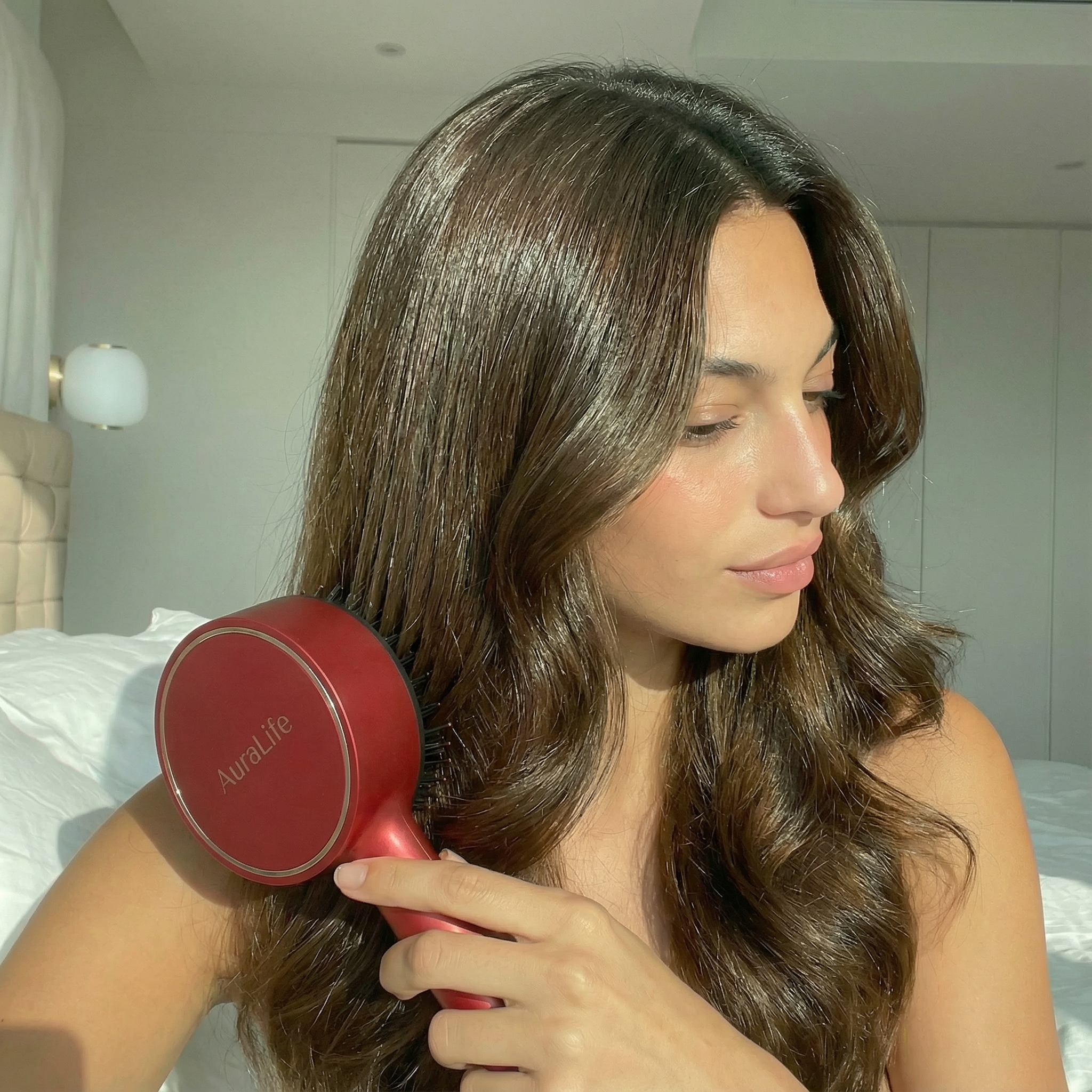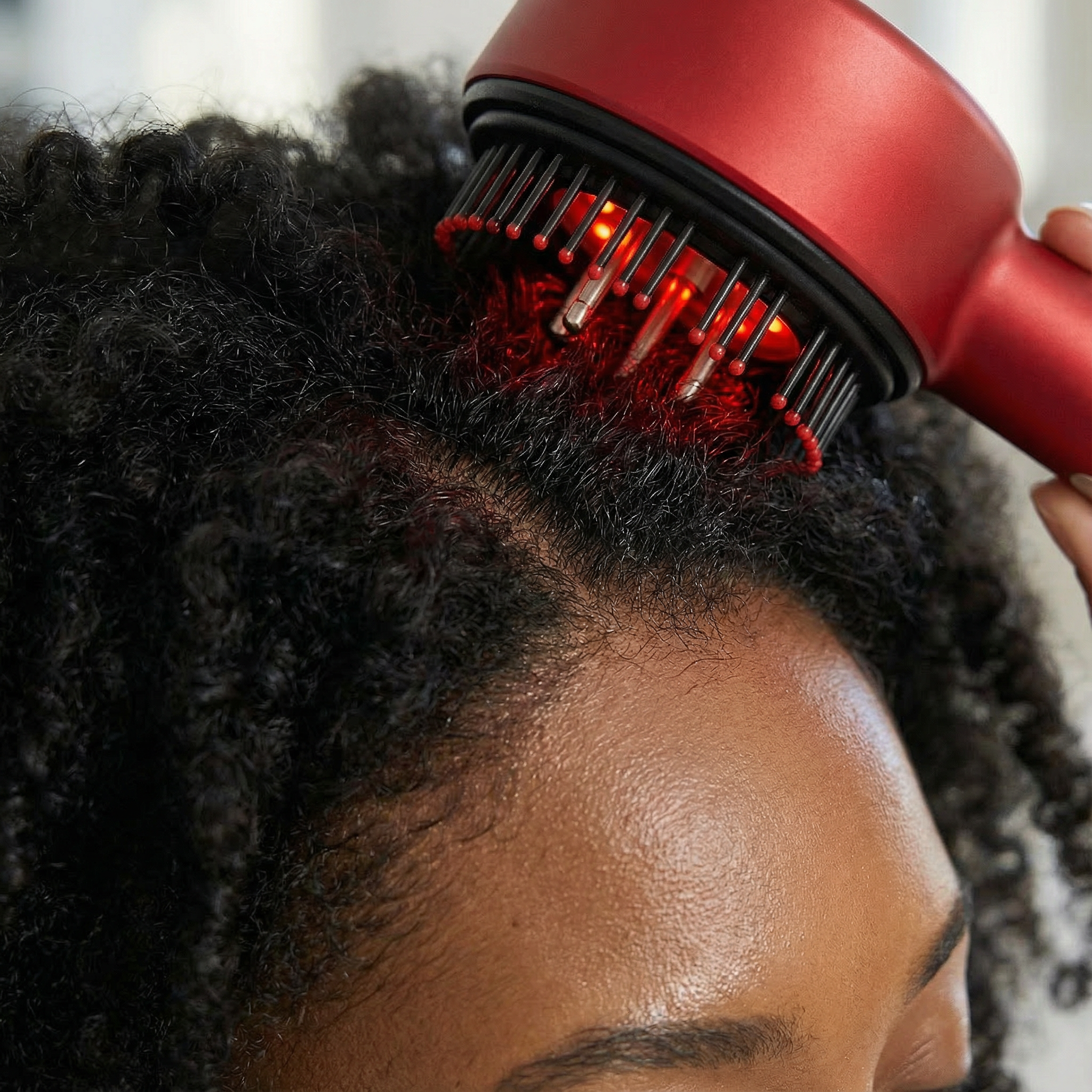 Stimulating red light + gentle scalp massage boosts circulation for fuller-looking, bouncier hair.