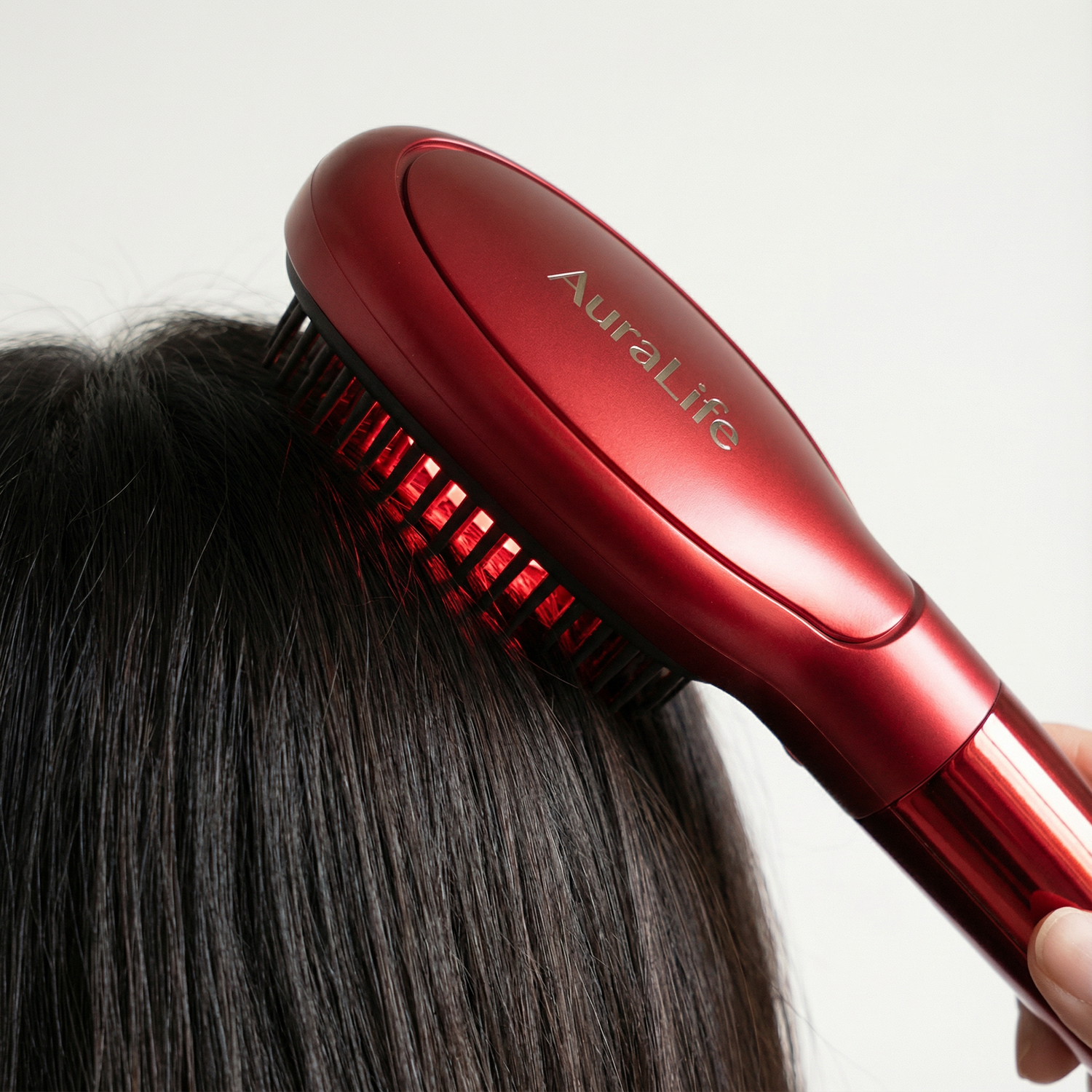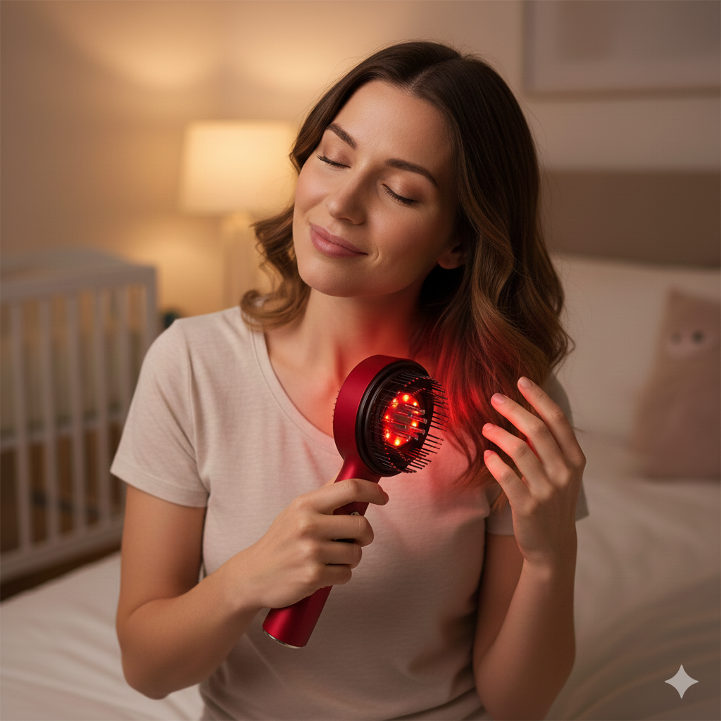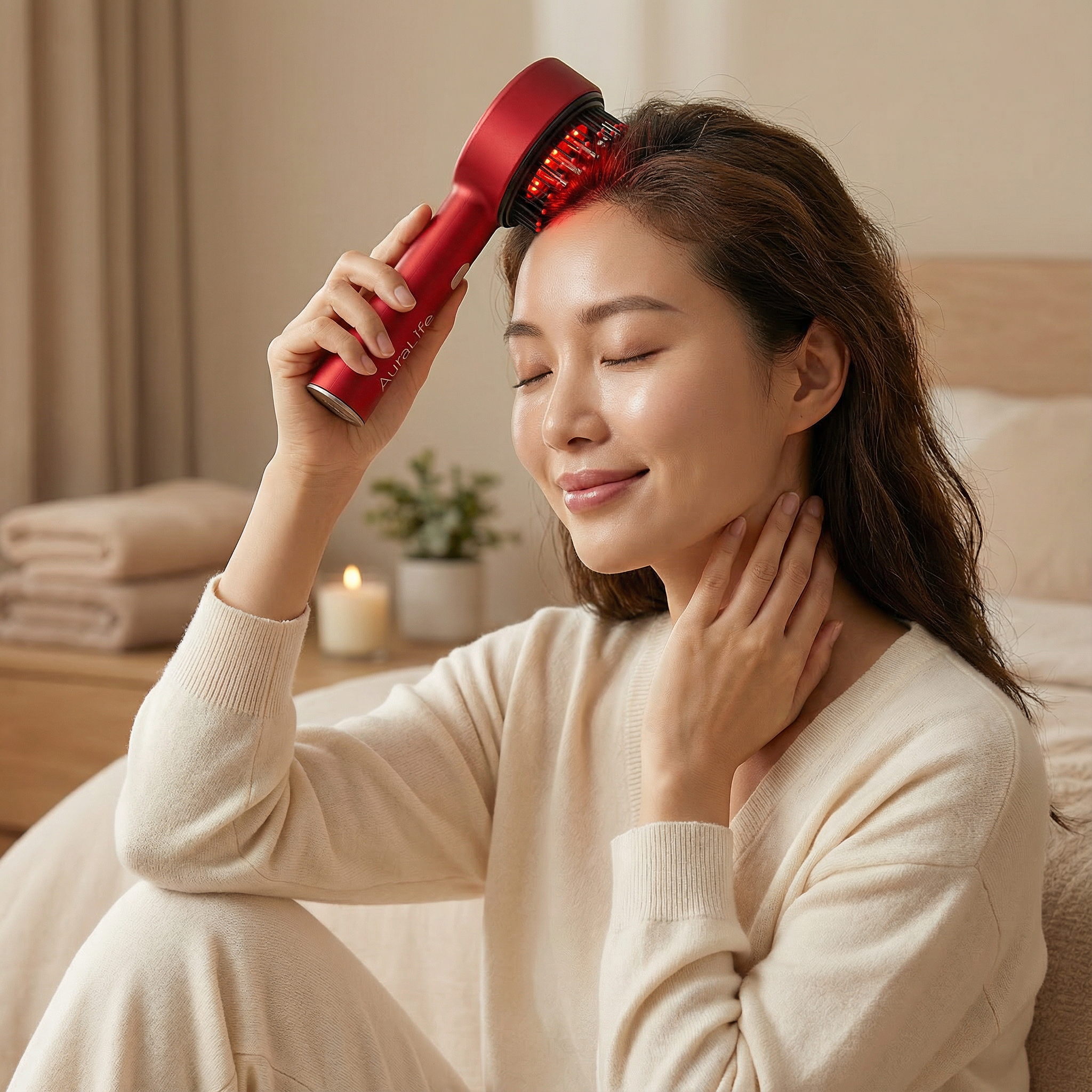 Stimulating red light + gentle scalp massage boosts circulation for fuller-looking, bouncier hair.
