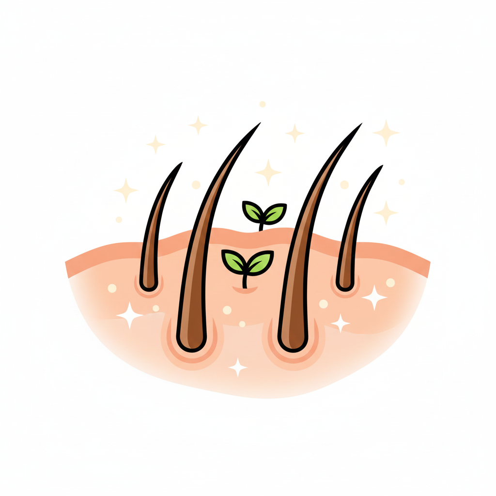 It stimulates hair follicles by increasing blood circulation and cellular activity, promoting natural growth and strengthening existing hair.